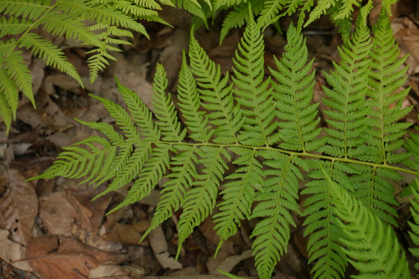 뿌리줄기는 곳곳에서 잎을 뻗는데 땅속으로 1m 정도 자란다. 잎자루는 연한 황토색이며 20~80cm 길이로 자라며 땅에 묻혀있는 부분은 털이 있고 갈색이다. 둥그스름한 삼각형의 잎은 3회 우상복엽으로 뒷면에는 약간의 털이 있다. 열편의 가장자리는 밋밋하고 작은 잎 조각은 갈라지지 않고 길게 자란다. 엽맥은 2개씩 2~3회로 갈라진다. 가장 밑의 잎조각이 가장 크다. 낭퇴는 적갈색으로 포막으로 싸여 잇다. 어린순은 식용으로 많이 이용되며 식물성 치료제로도 사용하고 있다.