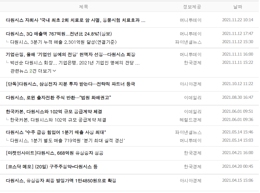 • 다원시스 - 관련 뉴스