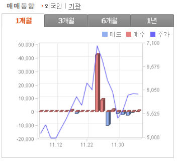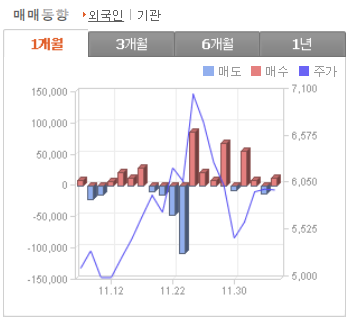 외국인 매매동향 (1개월), 기관 매매동향 (1개월)