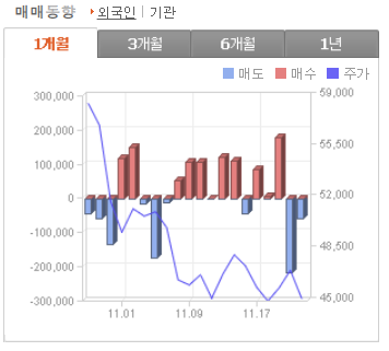 외국인 매매동향 (1개월), 기관 매매동향 (1개월)