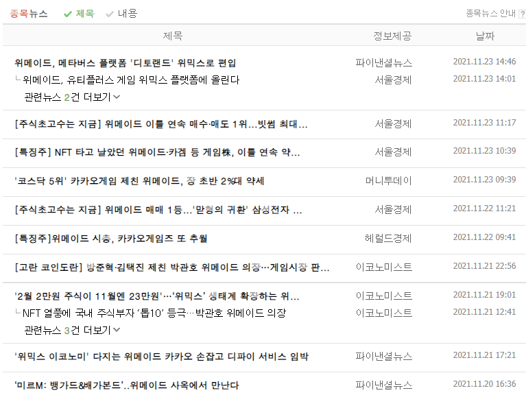 위메이드의 기업 개요, 업종 분석, 투자자별 매매동향, 관련 뉴스, 차트 분석을 통해 주가 전망 해보도록 하겠습니다.