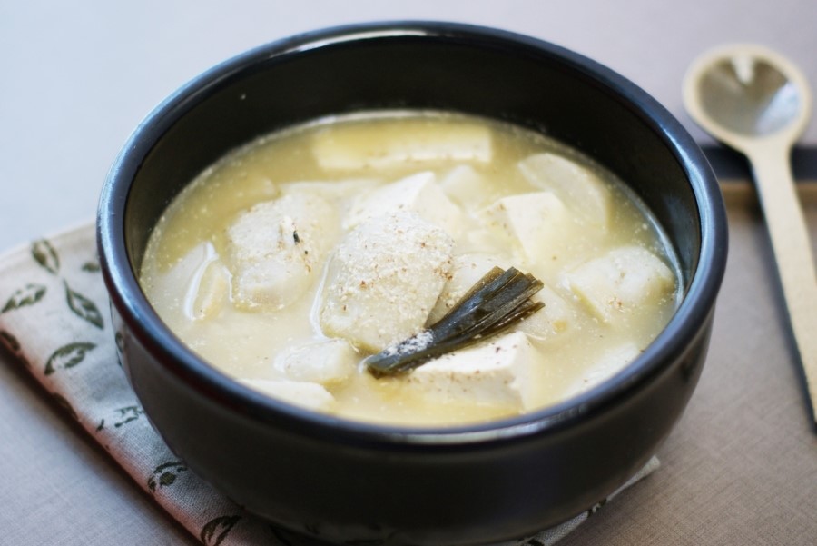 토란은 껍질을 벗긴 후 쌀뜨물에 한번 끓이고, 다시마 육수에 쇠고기를 넣고 중불에 넣어 끎이다가 (10분정도) 국간장과 두부, 소금, 마늘, 토란을 넣고 다시 센불에 끓여 주고, 확 끓어 오르면 약불로 2~3분 기다렸다가 끝냅니다.