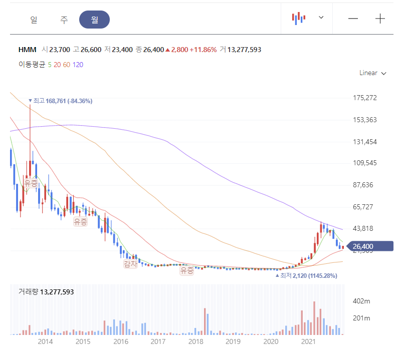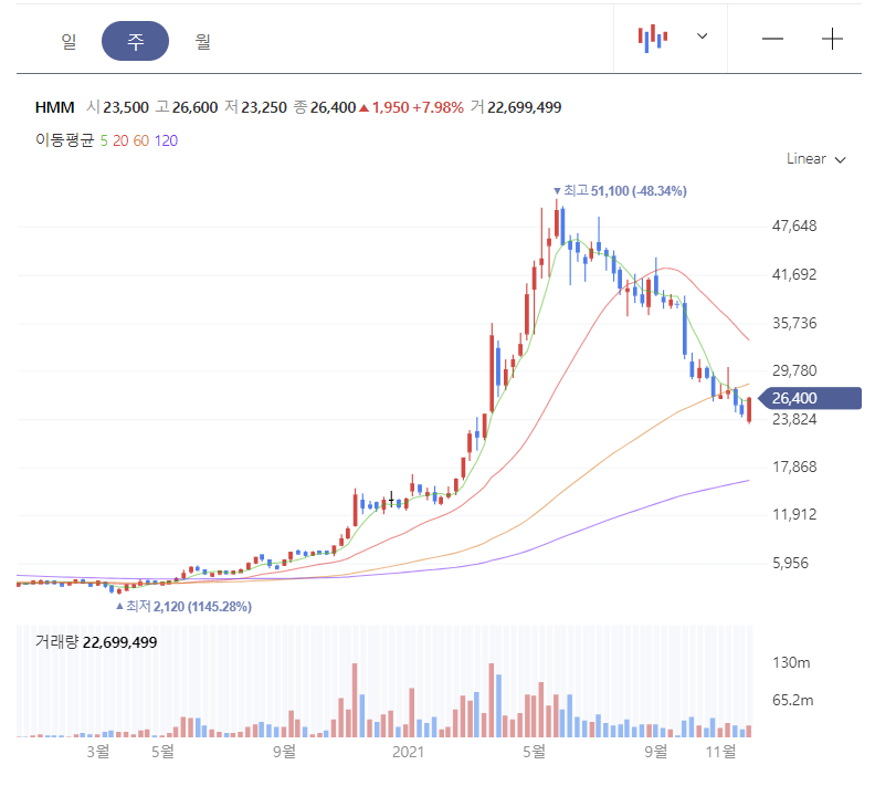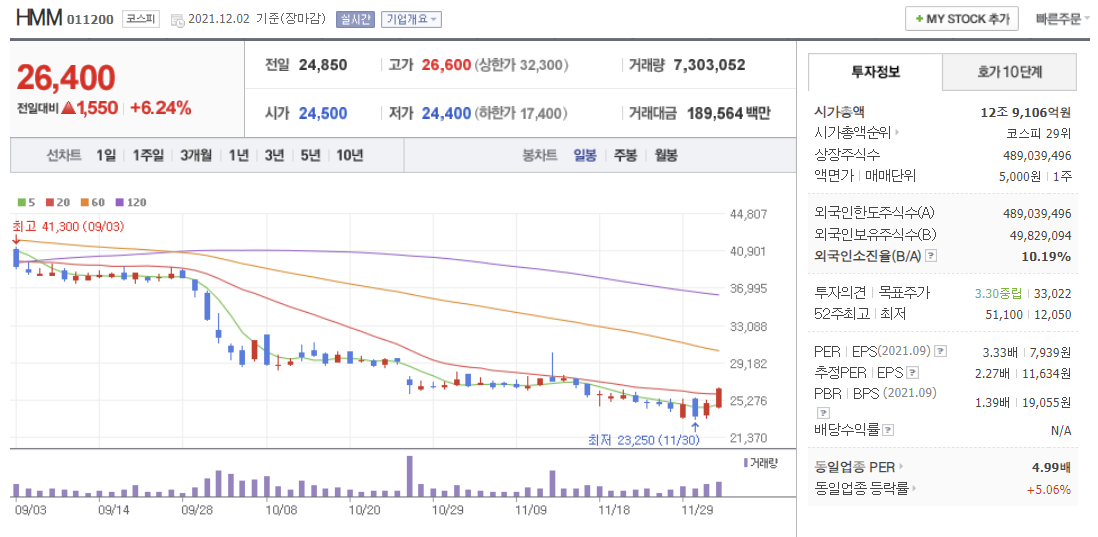 2021년 12월 2일 종가 기준입니다. 그 유명한 해운회사 HMM 주가에 대해 알아 보겠습니다.
