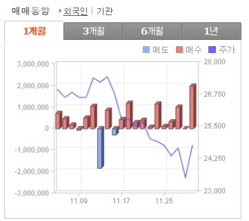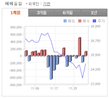 외국인 매매동향 (1개월), 기관 매매동향 (1개월)