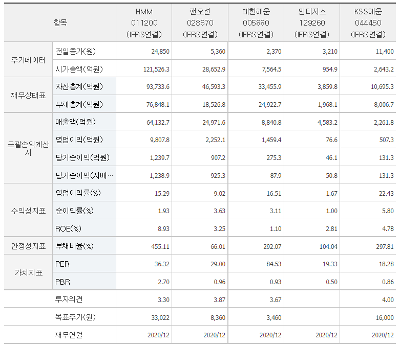 굉장히 매력적인 종목입니다. 해운쪽 업황 개선은 기정사실이고 실적도 경이로운 실적을 보여주고 있는데, 그동안은 선반영되어 주가가 꾸준히 큰폭으로 상승하였고, 이후 4~5달간 조정을 받고 있는데요. 내년을 목표로 현재 가격대가 꽤 매력적으로 보여지는데요. 더 가격대가 떨어지면 분할 매수하는 전략으로 안전하게 접근한다면 좋은 수익 기대해볼 수 있을 것 같습니다.