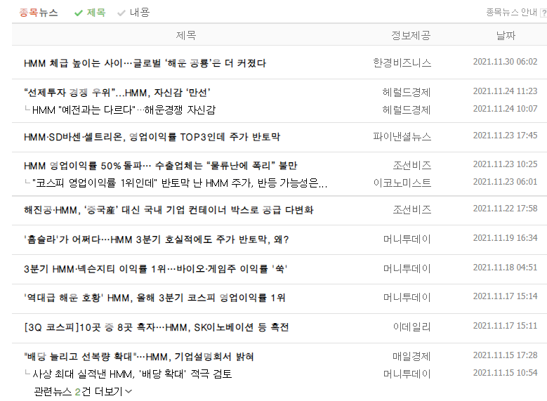 HMM의 기업 개요, 업종 분석, 투자자별 매매동향, 관련 뉴스, 차트 분석을 통해 주가 전망 해보도록 하겠습니다.