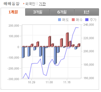 외국인 매매동향 (1개월), 기관 매매동향 (1개월)